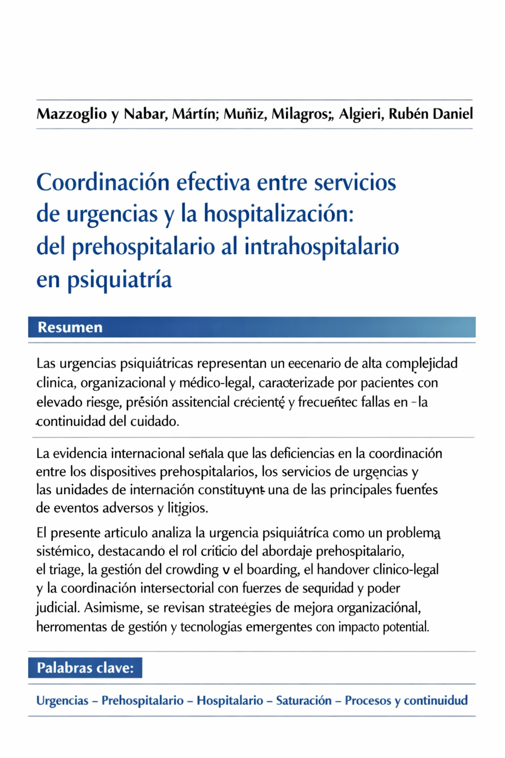 Mar 25, 2026 Biblioteca Mazzoglio y Nabar, Martin Muñiz, Milagros Algieri, Rubén Daniel Urgencias psiquiátricas · Riesgo clínico · Continuidad del cuidado · Triaje · Crowding ·.. Read more