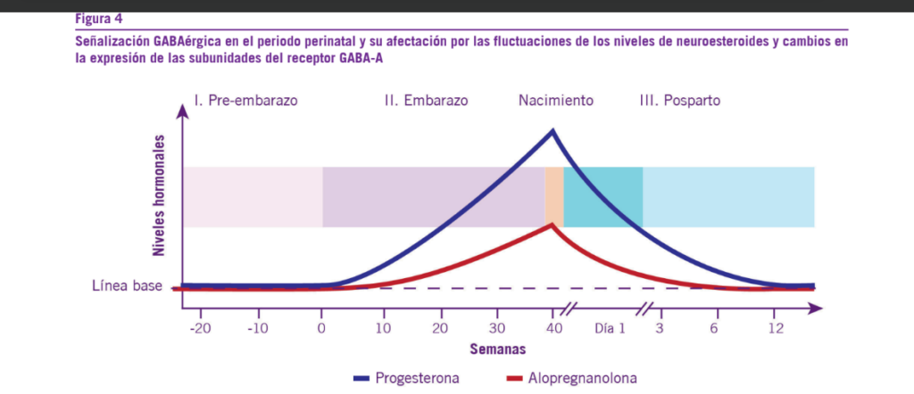 La brexanolona constituye una formulación sintética y solu- ble de la alopregnanolona, la cual posee baja solubilidad en agua, escasa biodisponibilidad oral y es rápidamente meta- bolizada. La alopregnanolona es una hormona cerebral y me- tabolito de la progesterona cuyas concentraciones aumentan rápidamente durante el embarazo, llegando a su pico máximo en el tercer trimestre de gestación. Es un neuroesteoide que se encuentra disminuido en el posparto, como así también, en diversos cuadros psiquiátricos tales como la depresión y ansiedad. Se considera a la reducción de los niveles de alo- pregnanolona como la principal causa fisiopatológica de la DPP. El estrés crónico y repetido genera una disminución sig-