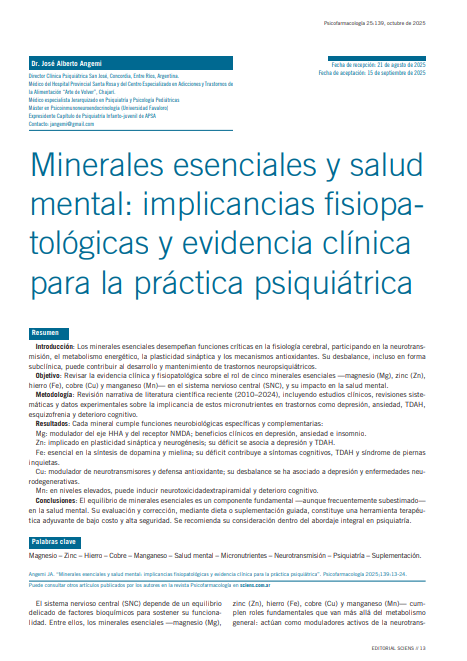 Sep 15, 2025 Biblioteca Dr. José Angemi Introducción: Los minerales esenciales desempeñan funciones críticas en la fisiología cerebral, participando en.. Read more