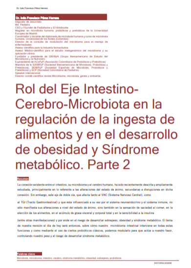 Sep 10, 2025 Biblioteca Dr. Iván Francisco Pérez Herrera Rol del Eje Intestino- Cerebro-Microbiota en la regulación de la ingesta de alimentos y.. Read more
