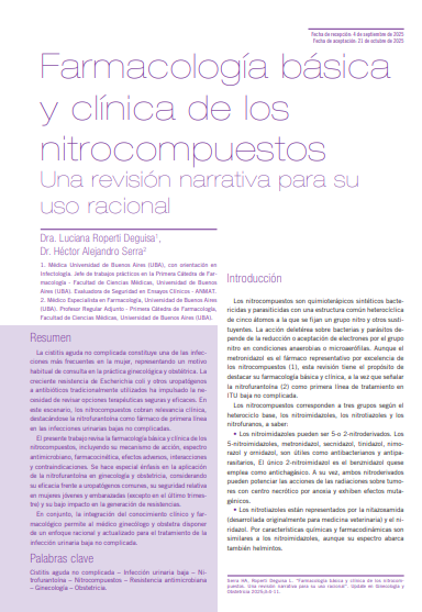 Oct 21, 2025 Biblioteca Dra. Luciana Roperti Deguisa, Dr. Héctor Alejandro Serra Dr. Héctor Alejandro Serra Farmacología básica y clínica de los nitrocompuestos Una revisión narrativa.. Read more