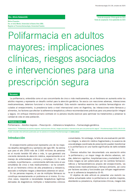 Sep 29, 2025 Psicofarmacología y Neurociencias Dra. Alicia Kabanchik La polifarmacia, entendida como el uso concomitante de cinco o más medicamentos, es un.. Read more