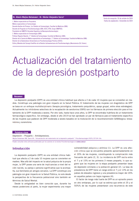 Dic 2, 2024 Psicofarmacología y Neurociencias Dr. Alexis Mejías Delamano, Dr. Héctor Alejandro Serra La depresión postparto (DPP) es una entidad clínica habitual que afecta a 2 de.. Read more