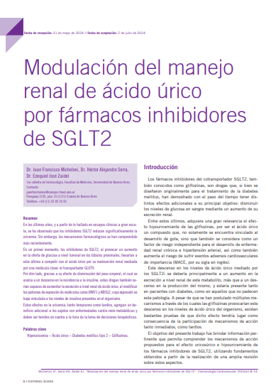 Jul 2, 2024 Farmacología Cardiovascular Dr. Juan Francisco Micheloni, Dr. Héctor Alejandro Serra, Dr. Ezequiel José Zaidel Modulación del manejo renal de ácido úrico por fármacos inhibidores de SGLT2 Resumen En.. Read more