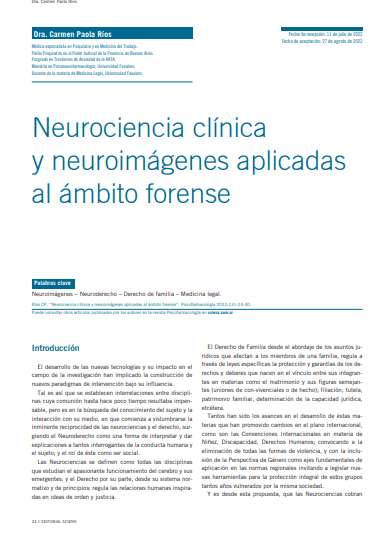 Ago 27, 2022 Psicofarmacología y Neurociencias Dra. Carmen Paola Ríos Neurociencia clínicay neuroimágenes aplicadas al ámbito forense Palabras clave Neuroimágenes – Neuroderecho – Derecho.. Read more