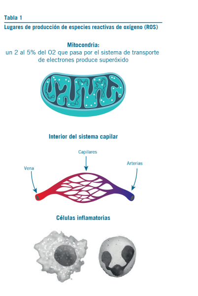 NAC es un tiol precursor de L-cisteína y GSH reducido. Es fuente de grupos sulfhidrilo en las células y un potente eli- minador de radicales libres, ya que interactúa con especies reactivas de oxígeno (ROS) como OH y H2O2 (ver lugares de producción en Tabla 1). Estos provocan daños en ADN, lípidos y proteínas por oxidación y peroxidación (1, 2).