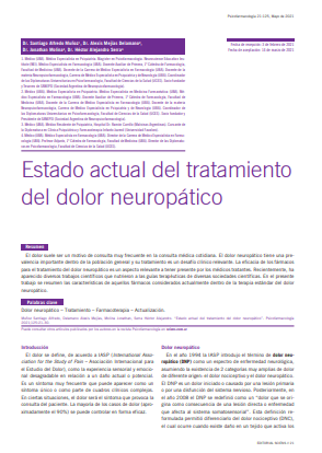 Muñoz Santiago Alfredo, Delamano Alexis Mejías, Molina Jonathan, Serra Héctor Alejandro. “Estado actual del tratamiento del dolor neuropático”. Psicofarmacología 2021;125:21-30.