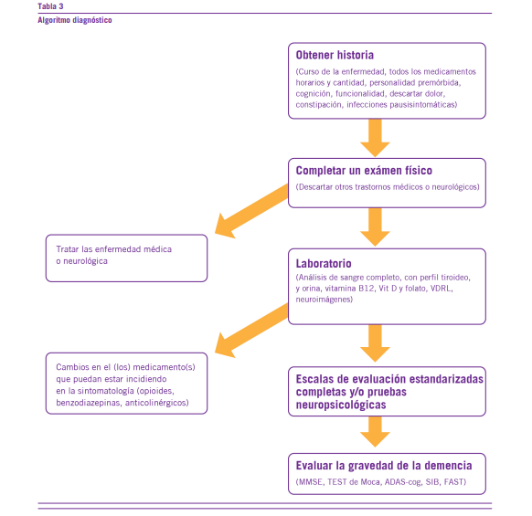 Se debe considerar las circunstancias actuales de la vida del paciente, su capacidad funcional e indagar antecedentes fami- liares de trastornos psiquiátricos y especialmente cognitivos.