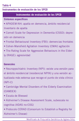 Pueden aparecer en cualquier momento de la enfermedad, generan sufrimiento en el paciente, el cuidador y a todo el entorno, agravan el deterioro cognitivo y funcional, son causa de institucionalización, y son altamente prevalentes, (el 97% de los pacientes con diagnóstico de demencia). Los SPCD for-man parte de la expresión de la alteración de las estructuras cerebrales implicadas también en las funciones cognitivas, existiendo diferencias tanto en el momento de aparición como en su curso y en la respuesta al tratamiento (Tabla 1).