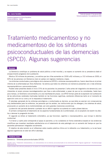 Tratamiento medicamentoso y no medicamentoso de los síntomas psicoconductuales de las demencias (SPCD). Algunas sugerencias