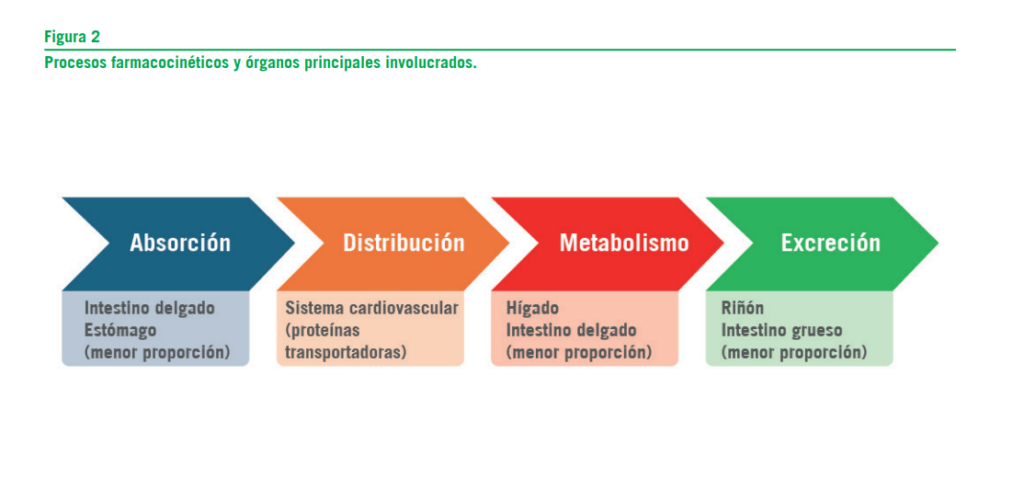 En la figura 2 se muestran losprocesos farmacocinéticos de manera secuencial.