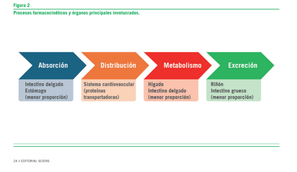 En la figura 2 se muestran losprocesos farmacocinéticos de manera secuencial.