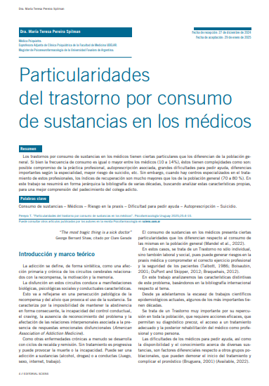 Ene 29, 2025 Biblioteca Dra. María Teresa Pereira Spilman Particularidades del trastorno por consumo de sustancias en los médicos Resumen Los trastornos por.. Read more