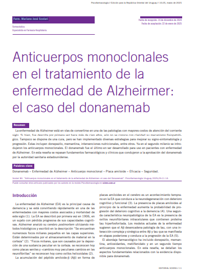 Ene 22, 2025 Biblioteca Farm. Mariano José Scolari Anticuerpos monoclonales en el tratamiento de la enfermedad de Alzheirmer: el caso del donanemab.. Read more