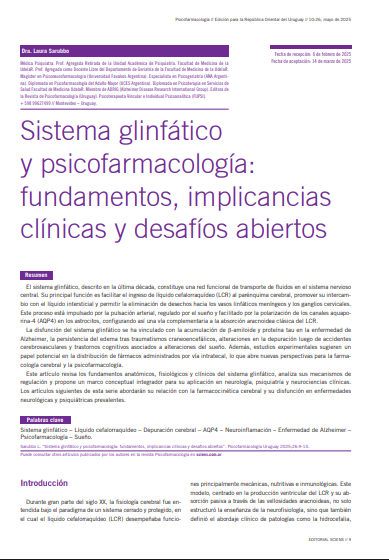 Mar 14, 2025 Psicofarmacología y Neurociencias Dra. Laura Sarubbo Resumen El sistema glinfático, descrito en la última década, constituye una red funcional de.. Read more